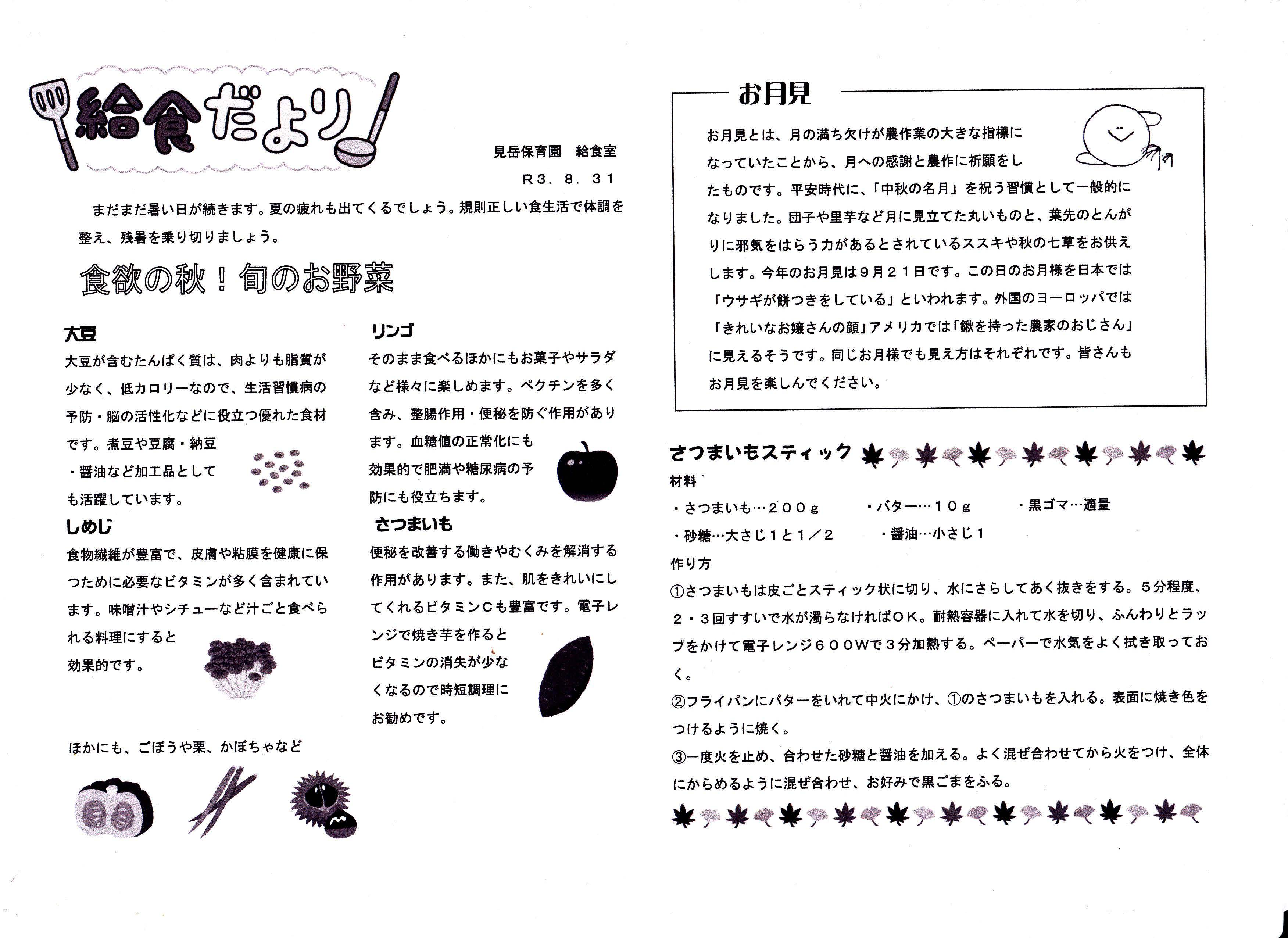 そして、いよいよ9月。運動会は、運動を通して心身ともにたくましく成長する大事な活動です。友達とのつながりを深めながら、意欲的に活動できるように見守っていきたいと思います。子どもたちが毎日元気に登園できるよう、ご家庭と連絡を取り合いながら健康管理にも配慮していきたいと思います。