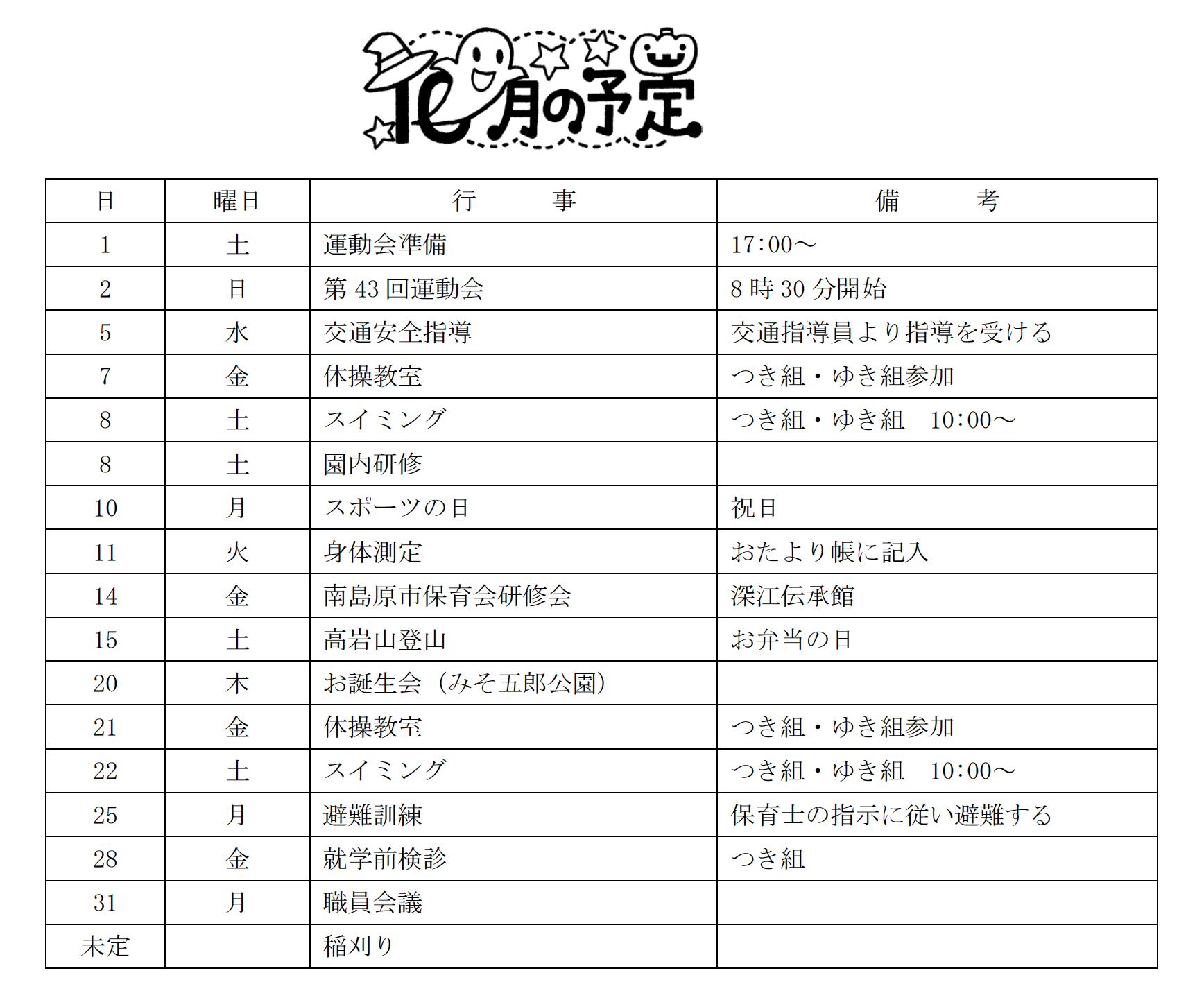 毎日、マーチング・かけっこ・リレー・お遊戯・競技など運動会の練習を頑張っている子ども達です。初めの頃に比べるとマーチングもお遊戯も上手になり、成長を感じる日々です。当日も元気いっぱい頑張ってくれると思うので応援よろしくお願いします。