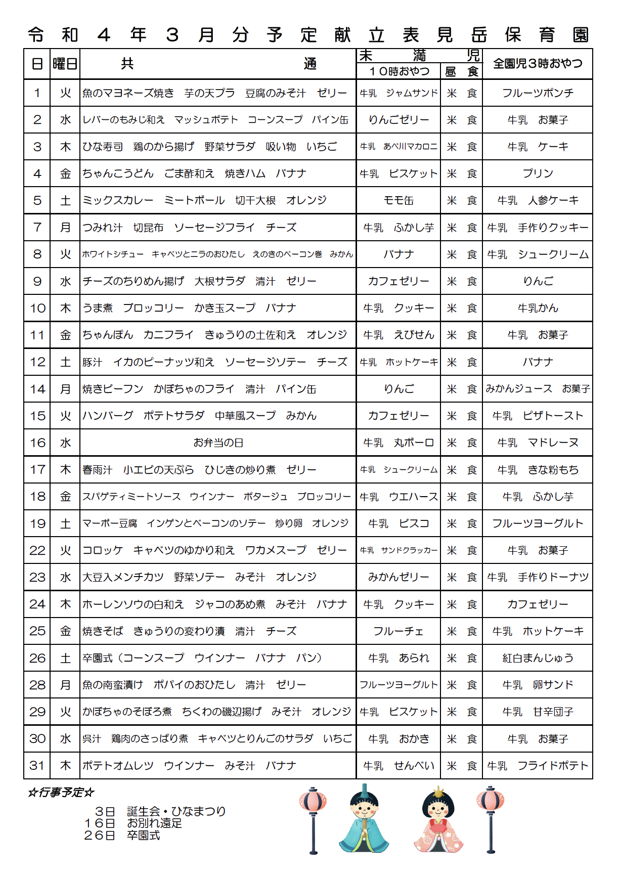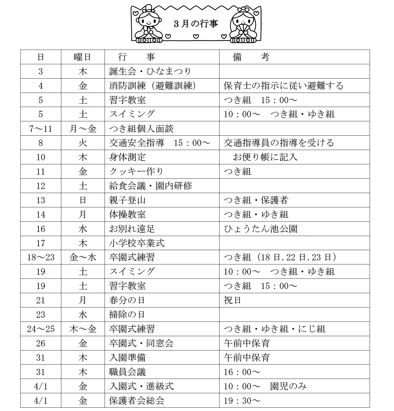 3月の行事予定