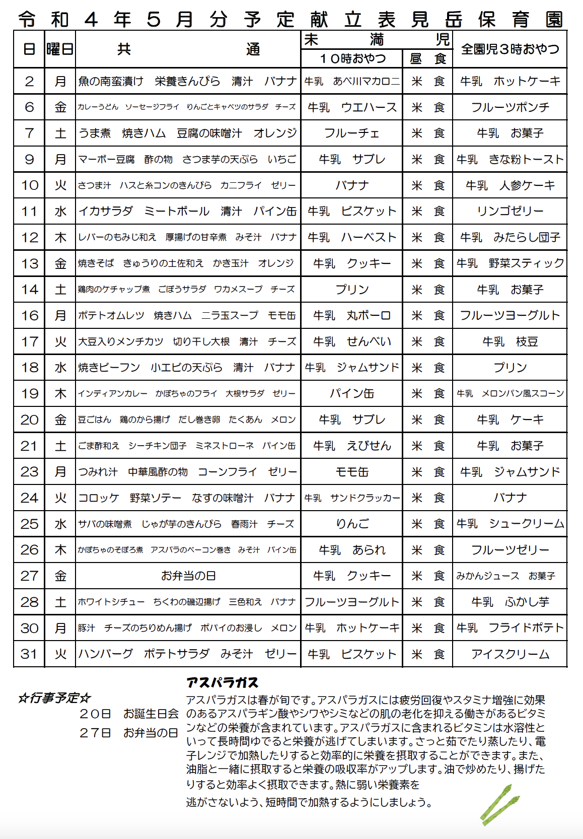 これまでお弁当(白ご飯)を持ってきていましたが、5月より園の方で白ご飯と箸の準備をします