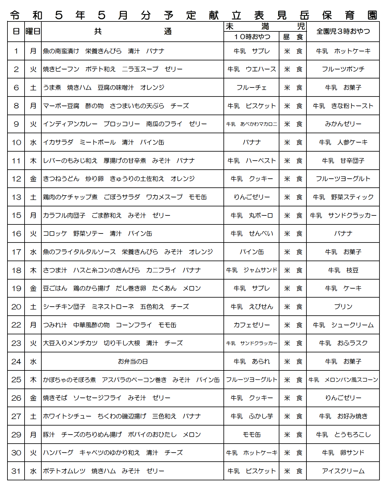 5月の行事予定