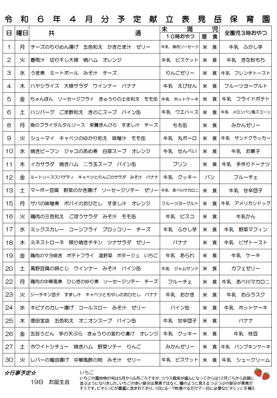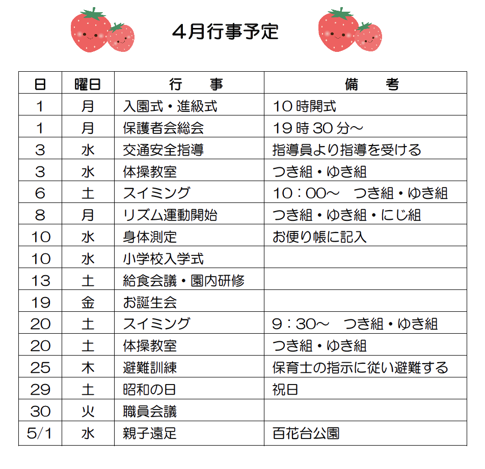 4月の行事予定