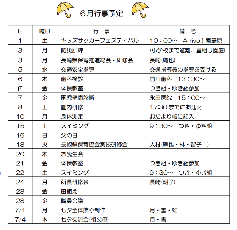 6月の保育目標