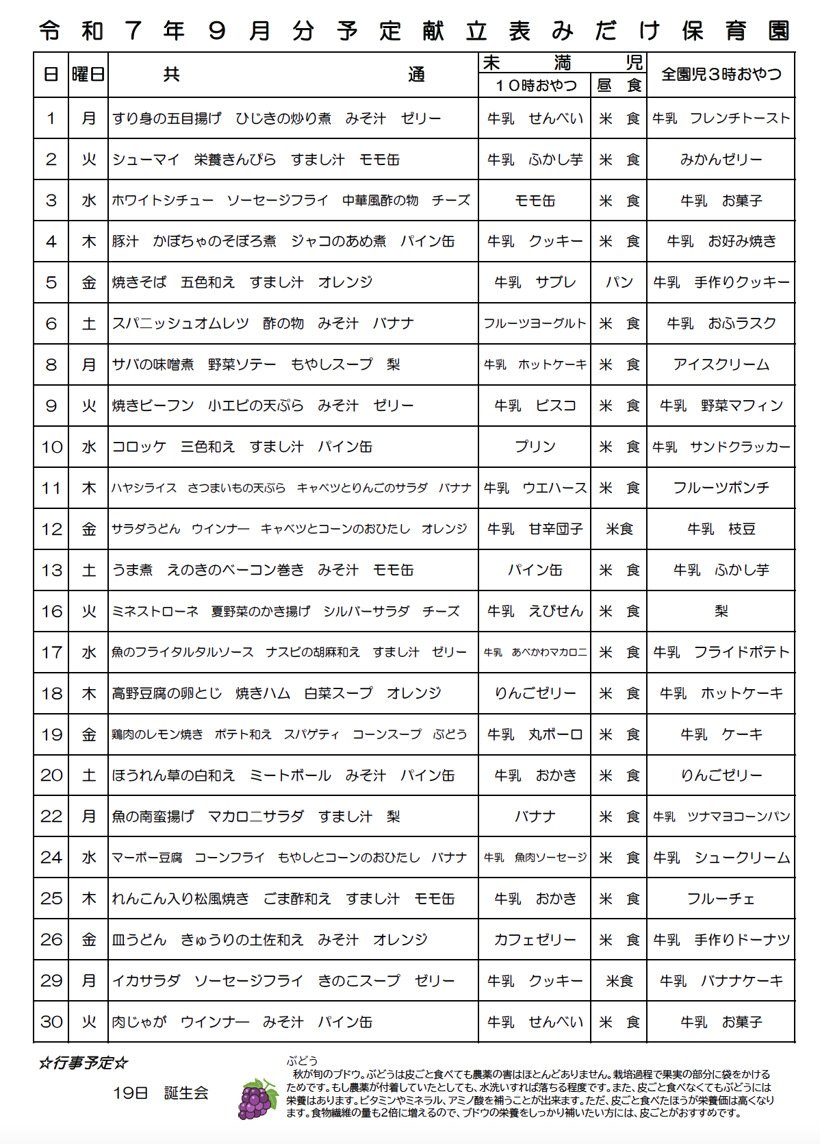 9月の保育目標