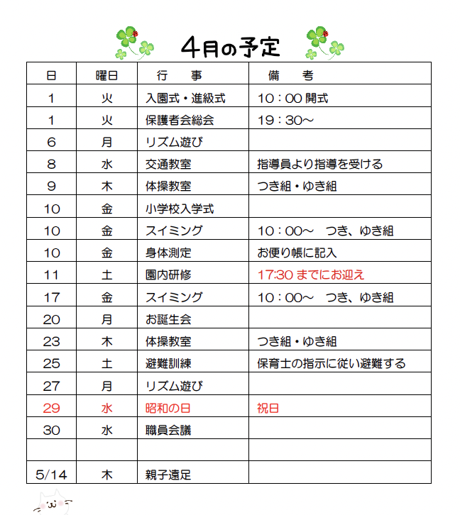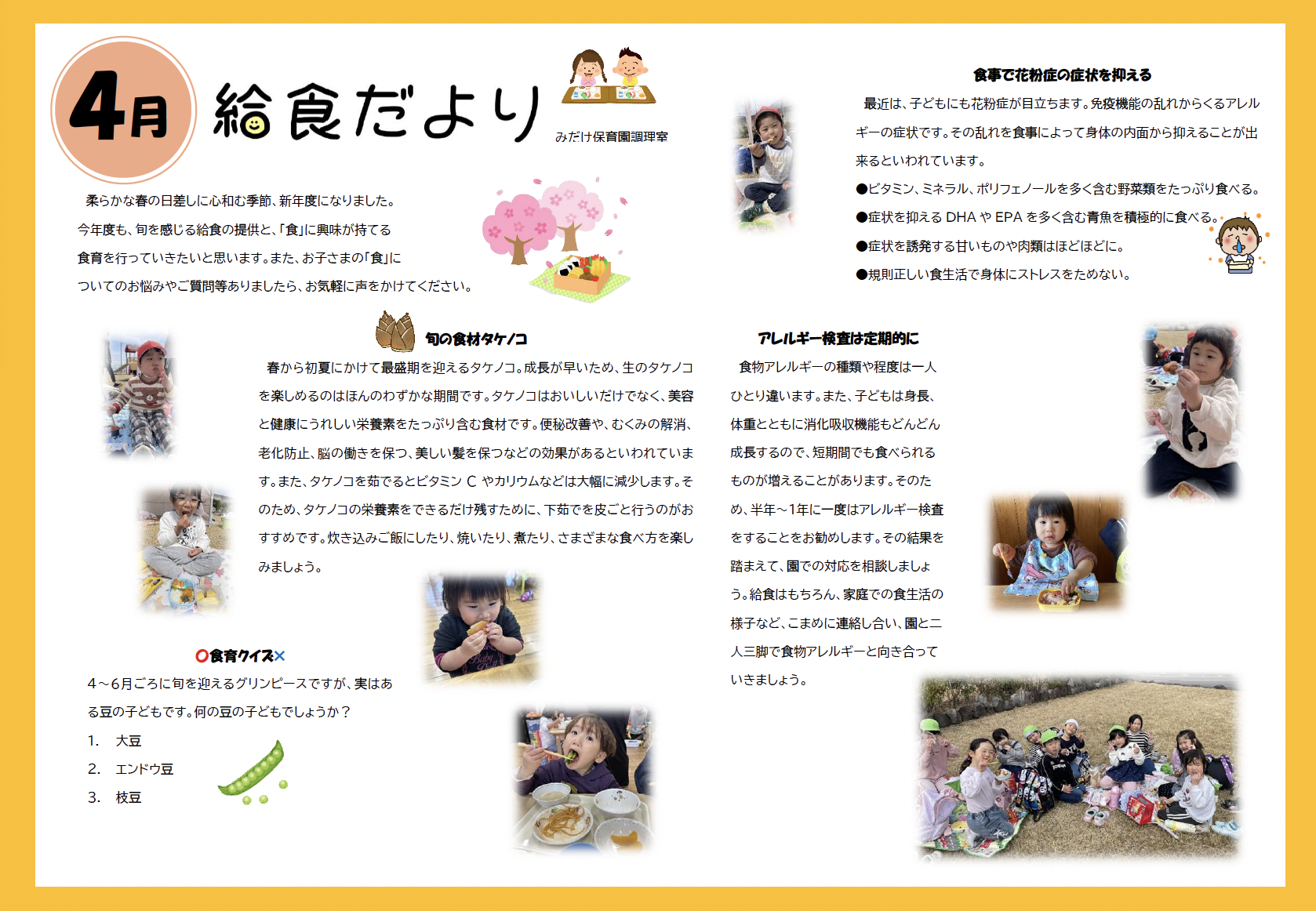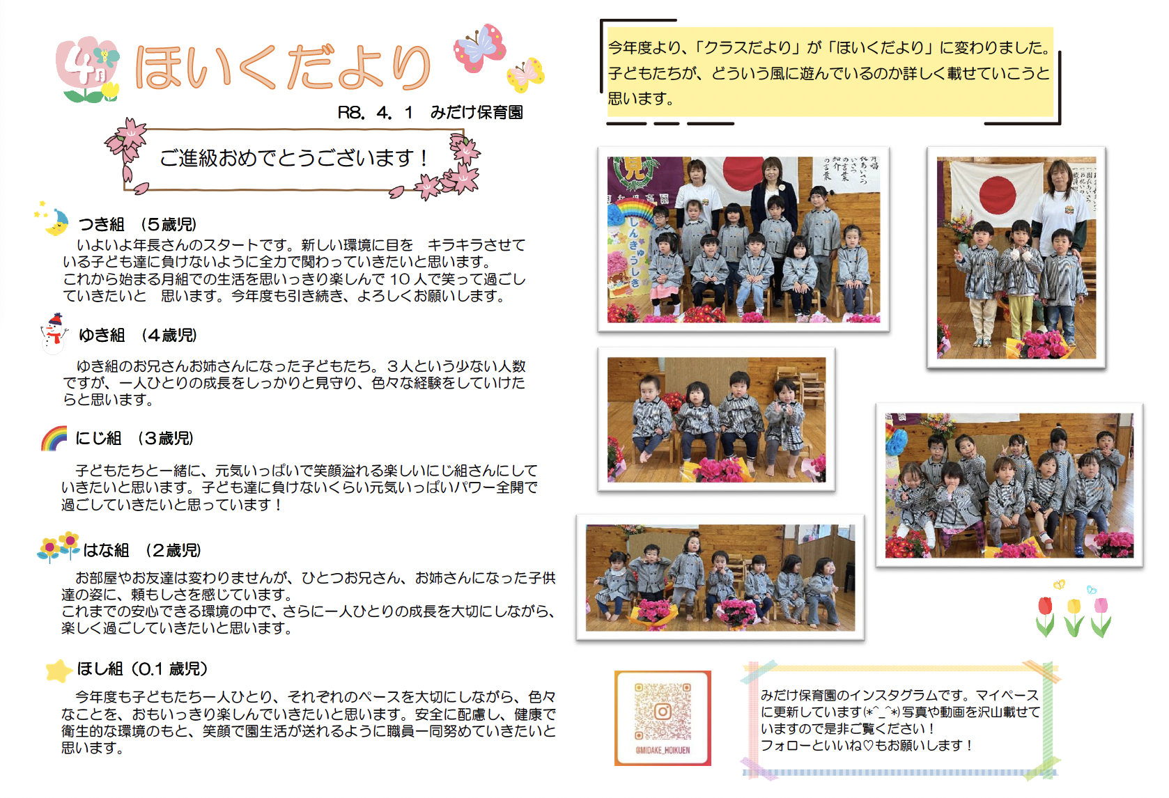 園庭の花々がきれいに咲き、皆さんの入園・進級をお祝いしているようです。これから一年間、たくさんの可能性を秘めた子ども達の健やかな成長を願って、保護者の方が安心して預けられるような園であるように、職員一同心を込めて保育していきたいと思います。今年度もどうぞよろしくお願い致します。